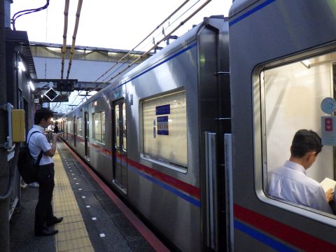 写真 京成電鉄の駅構内と車両(2025年9月19日16時頃、検見川駅にて)
