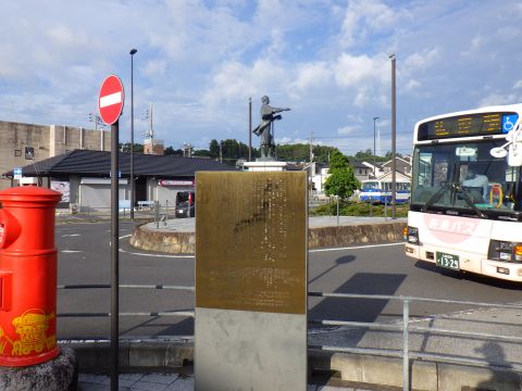 写真 成田線の駅前/伊能忠敬像(2025年9月29日7時10分頃、佐原駅にて)