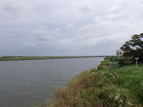 跨線橋から、利根川が見える。地図を見ると、距離は300mほど。さらに、その向こうは太平洋で、距離は5kmほど。
