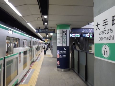 写真 東京メトロの駅構内と車両(2025年10月6日11時30分頃、大手町駅にて)