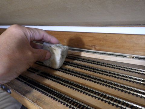 留置線のクギ打ちが終わったので、地味に線路清掃。