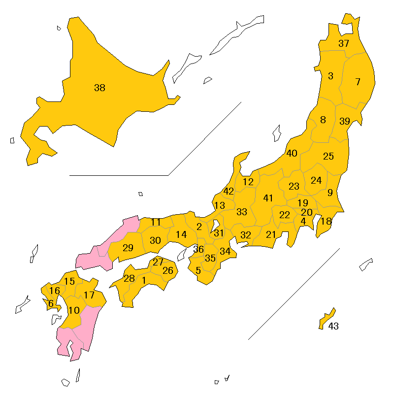 都道府県で数えると、新潟県と長野県を加えて、41県。