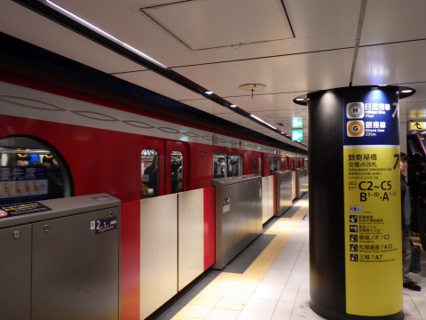 写真 東京メトロ丸ノ内線の駅構内と車両(2025年12月8日14時50分頃、銀座駅にて)
