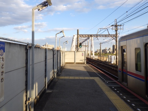 駅を出て、左手の車両基地を過ぎると、京成成田空港線(北総線)の高架をくぐる。