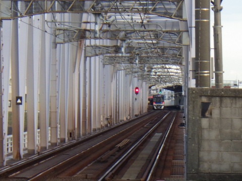 写真 京成電鉄の軌道と車両(2025年12月9日15時40分頃、江戸川駅にて)