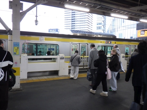 写真 総武線の駅構内と車両(2025年12月9日16時20分頃、小岩駅にて)