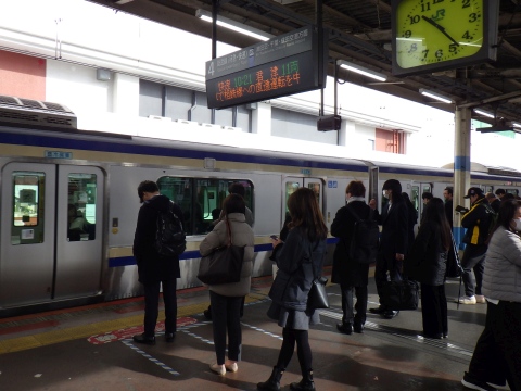 写真 総武線の駅構内と車両(2025年12月11日10時20分頃、船橋駅にて)