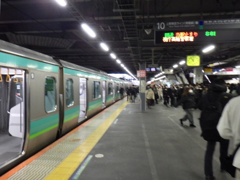 写真 上野東京ラインの駅構内と車両(2025年12月16日8時頃、品川駅にて)