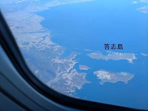 写真 答志島(2025年12月16日10時40分頃、宮崎空港〜羽田空港間にて)