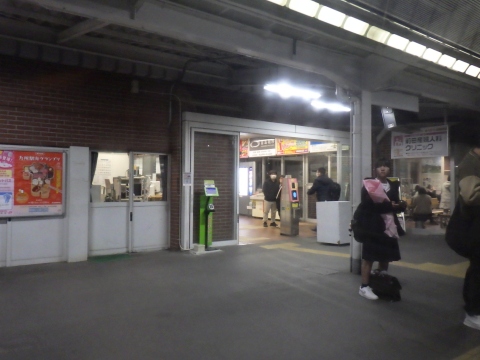 写真 日豊線の駅構内(2025年12月16日18時頃、国分駅にて)