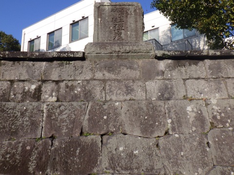 お城の石垣や、近くにあった私学校の石垣には、西南戦争の銃弾跡が残る。