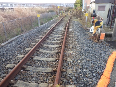 写真 美祢線の軌道(2025年12月17日16時頃、厚狭駅付近にて)