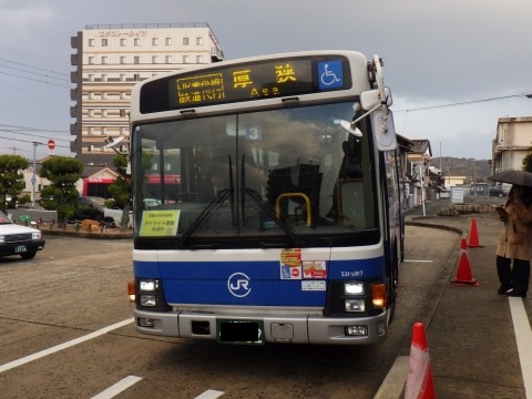 列車の代わりに、代行バスが走っている。