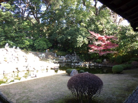 庭園は、雪舟{せっしゅう}作らしい。日本庭園によくある心池じゃないのが、かえって新鮮。