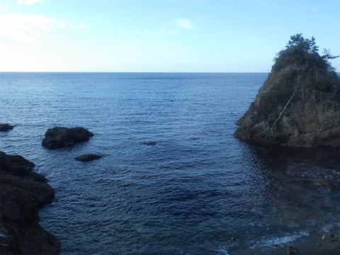 頂上に登ると、日本海と外ノ浦。外ノ浦は、むかーし、北前船で賑わった由。