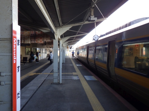 写真 山陰線の駅構内と車両/スーパーまつかぜ5号(2025年12月19日14時50分頃、浜田駅にて)