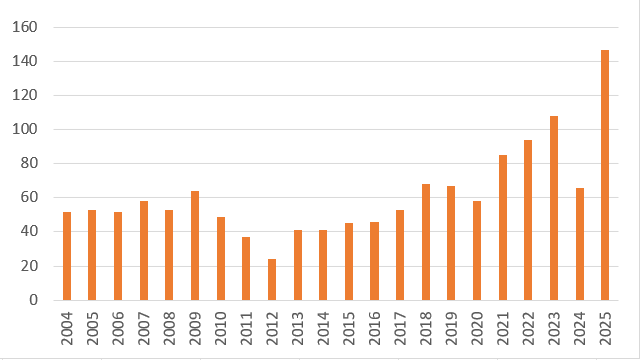 図 題数(2004年〜2025年)