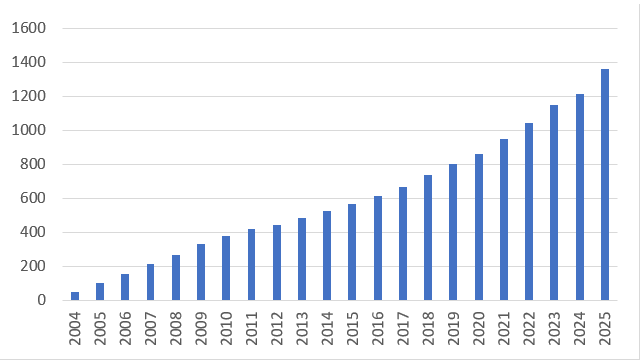 図 題数累計(2004年〜2025年)