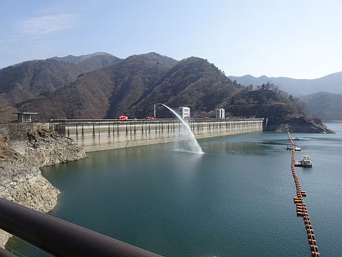 奥多摩湖は、多摩川を堰{せ}き止めた巨大な湖。水道用として作られたので、正式には小河内{おごうち}貯水池と言うそうだ。