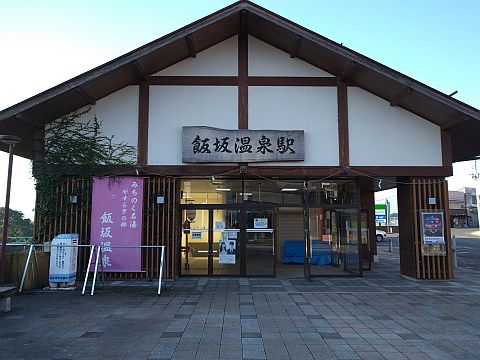 写真 福島交通の駅舎(2022年月10日2日6時50分頃、飯坂温泉駅にて)