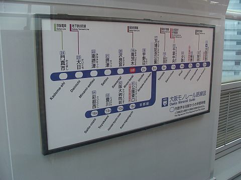 写真 大阪モノレールの路線図(2015年2月21日16時30分頃、万博記念公園駅にて)