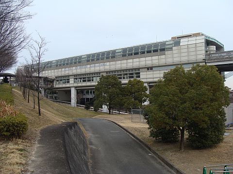 写真 大阪モノレールの駅舎(2015年2月21日16時40分頃、阪大病院前駅にて)