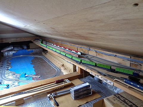 今さらではあるが、レイアウトの駅周辺の路盤の吊り金物がジャマだなぁ。