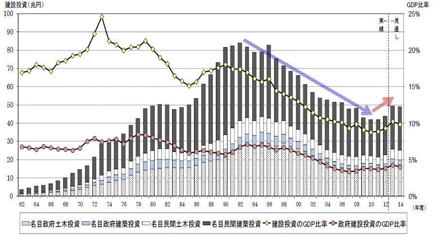 図1.1 建設投資額の推移2)
