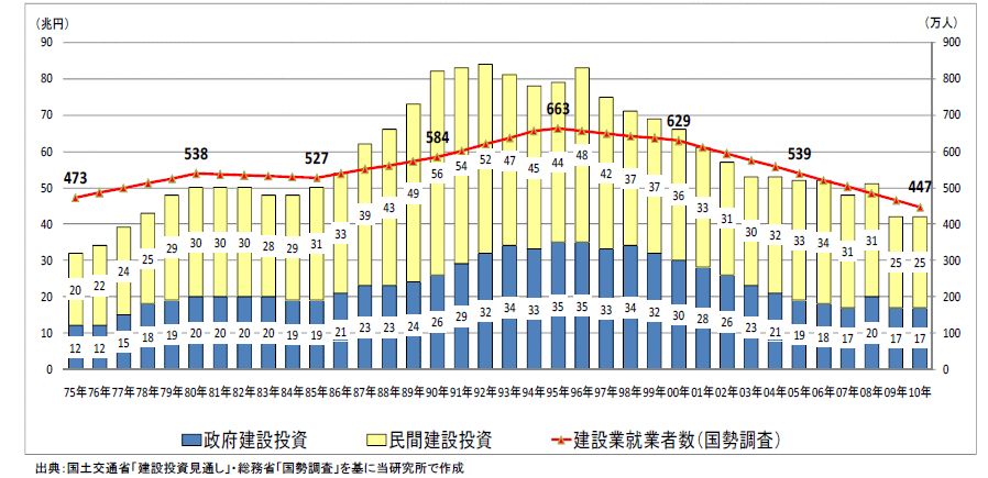 (財)建設経済研究所: 建設産業活性化会議「建設業就業者数の将来推計」, 2014.1(一部改変) |