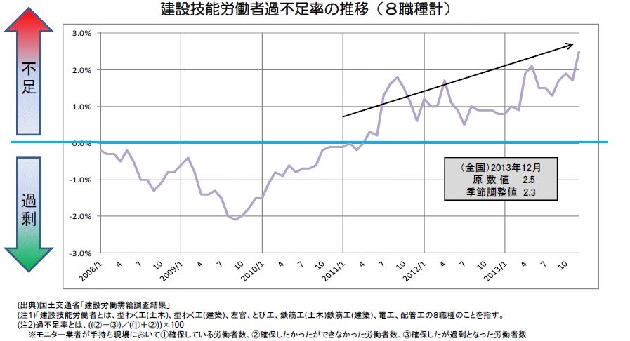 図1.3 建設労働者の過不足状況2)