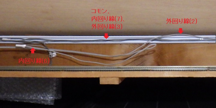 結果、内回り線(7)と(8)の給電部分の間に残っているのは、コモンの1線だけになった。いやー、スッキリしたなぁ。