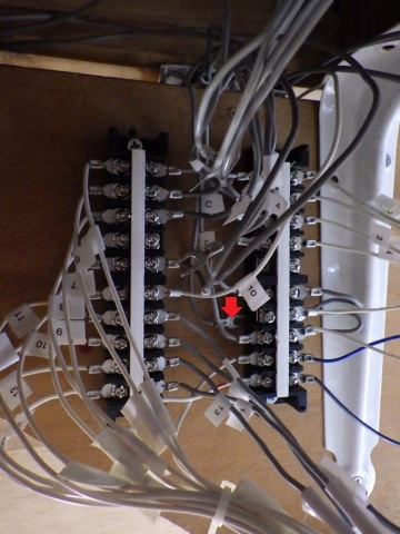 そうなると、問題は、内回り線(8)の給電部分から端子台までにあるということだ。
