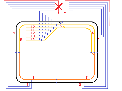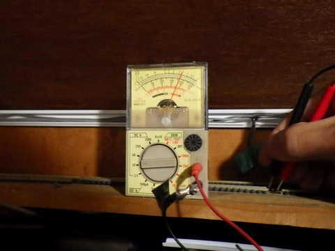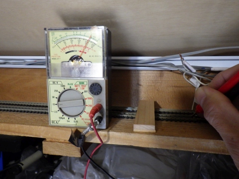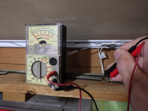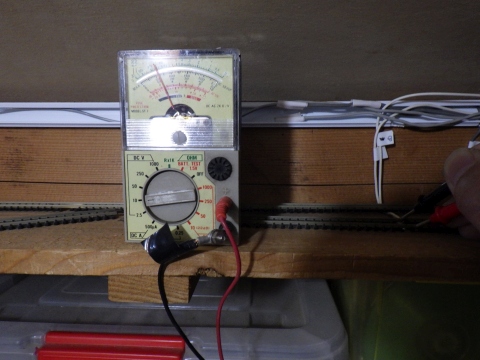 付け替えたけど、パワーパックはトリップしないで、内回り線(5)の給電個所の電圧は、それなりの電圧に。