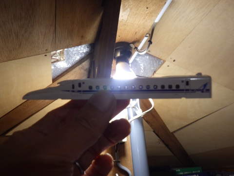 抵抗値が大きすぎるのか、LEDの個数が少なすぎるのか、そもそも車体の透過率が低すぎるのか。まぁ、何事によらず、一度でウマくはいかないなぁ。