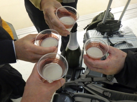 売店でお酒を仕入れて、機内でも宴会は続く。これは、いつものことだなぁ。